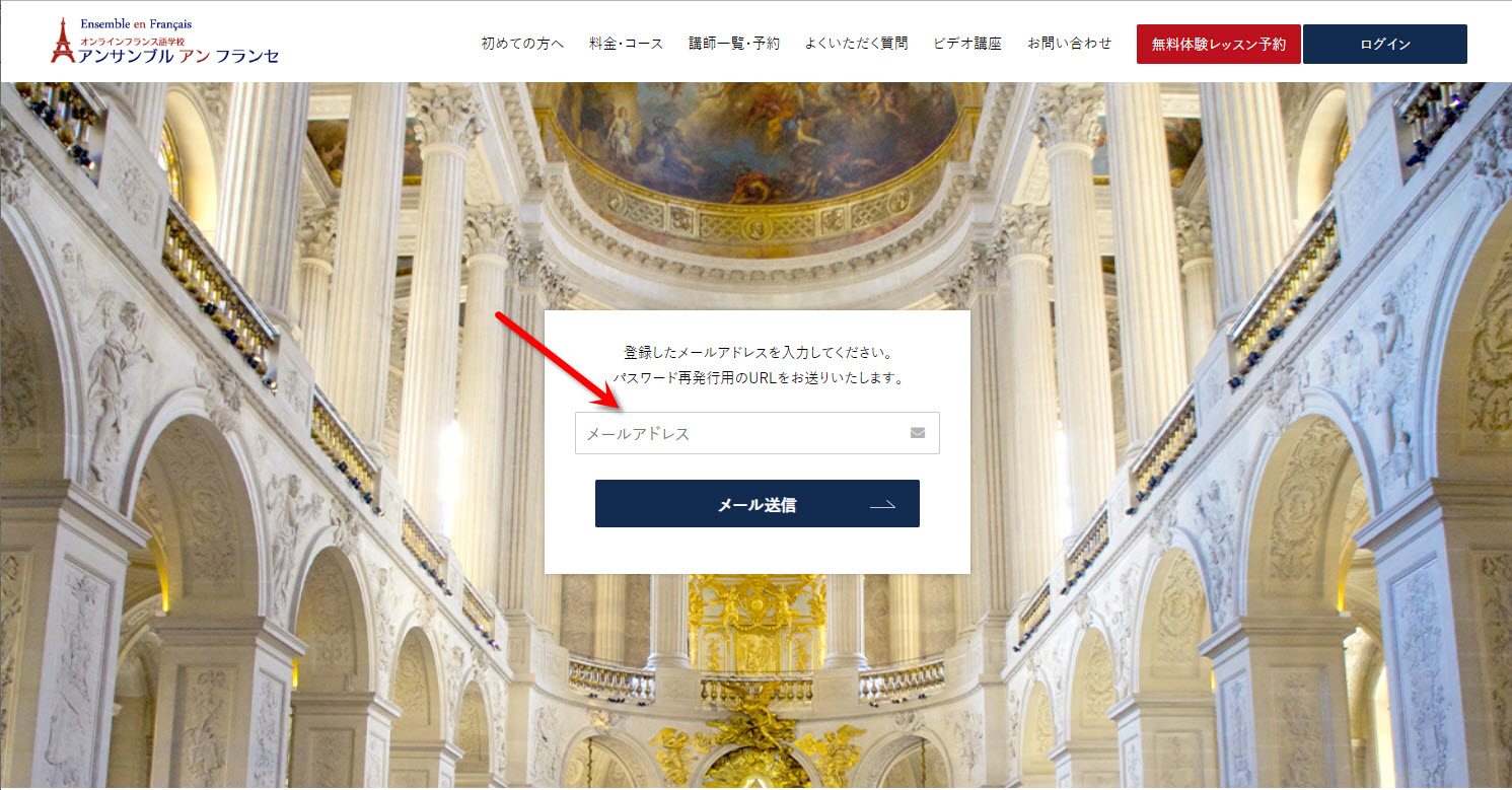 予約システムのパスワードを忘れた場合は、以下の手順でパスワードを再発行してください。