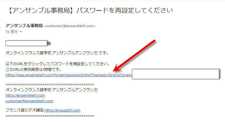3)登録したメールアドレスに「パスワードの再設定してください」というメールが届きましたらメール内のURLをクリックします。