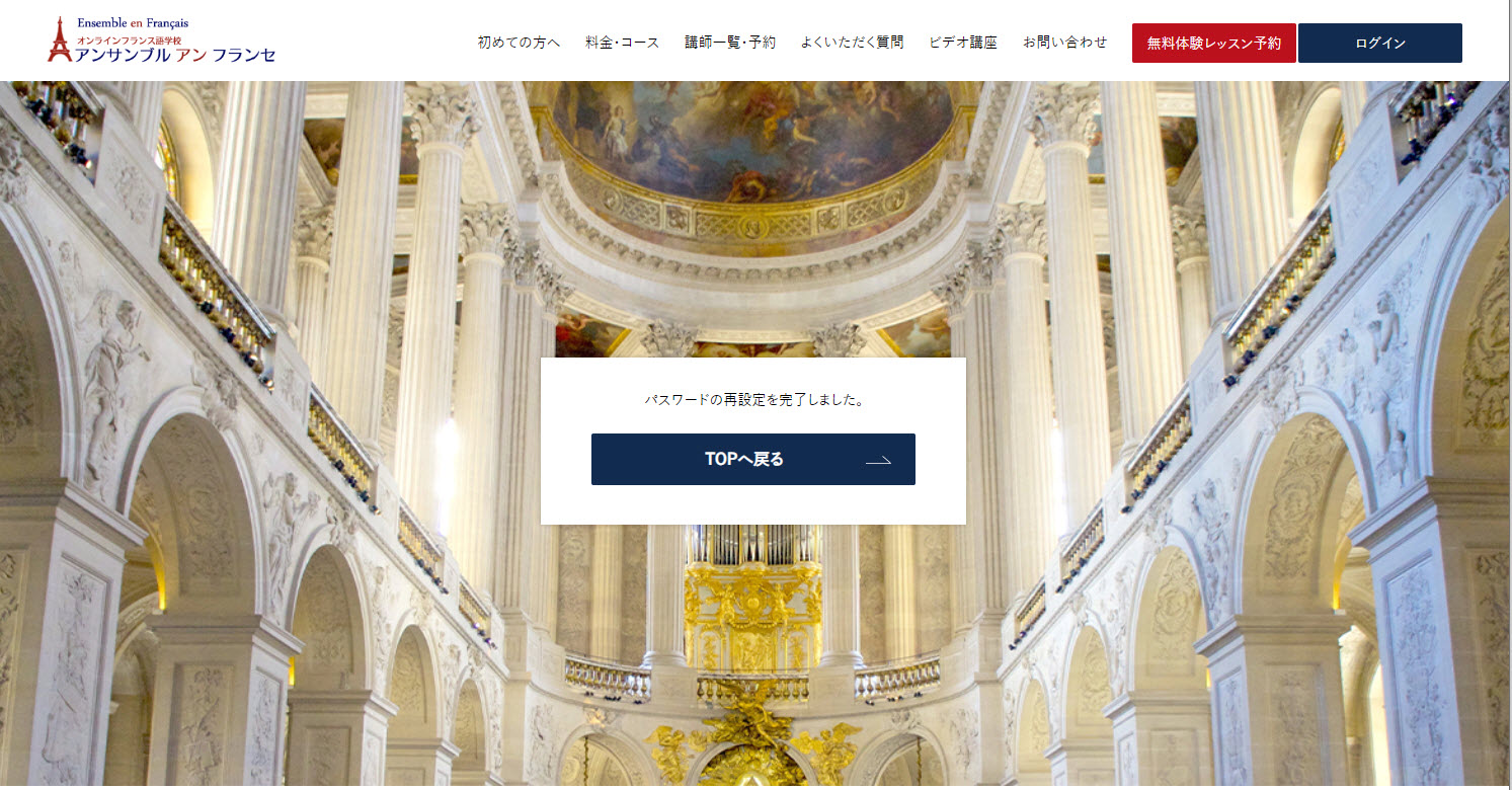 5)画面が切り替わり、パスワードの再設定が完了しました。再設定されたパスワードでログインをお試しください。
