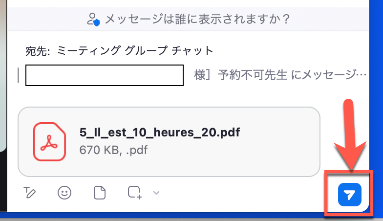 また、Zoomに入室されますと、チャットボックスを介して最大512MBまでのファイルを送信することができます。