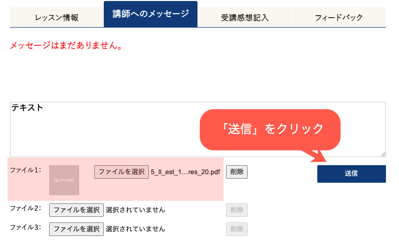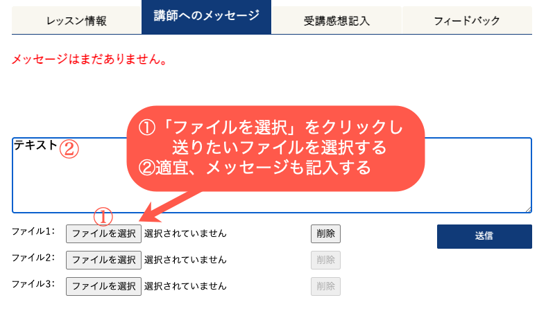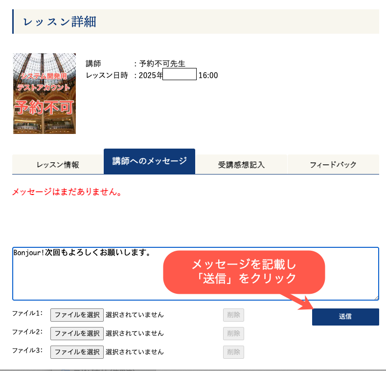 Step 3:講師にメッセージを送りたい場合は、「メッセージを」記入し「送信」ボタンをクリックしてください。