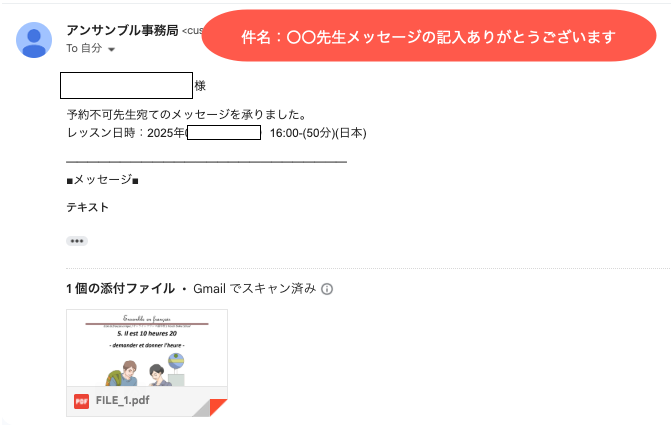 Step 6:講師へメッセージが正しく送信されるとメールでも通知が届きます。