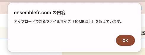 大きなファイルは圧縮されるか、ギガファイル便などのファイル転送サービスを利用されダウンロード用のURLを取得後、そのURLをメッセージ記載してください。