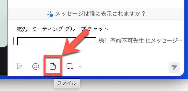 ①チャットボックスを開き、「ファイル」アイコンをクリックしてください。