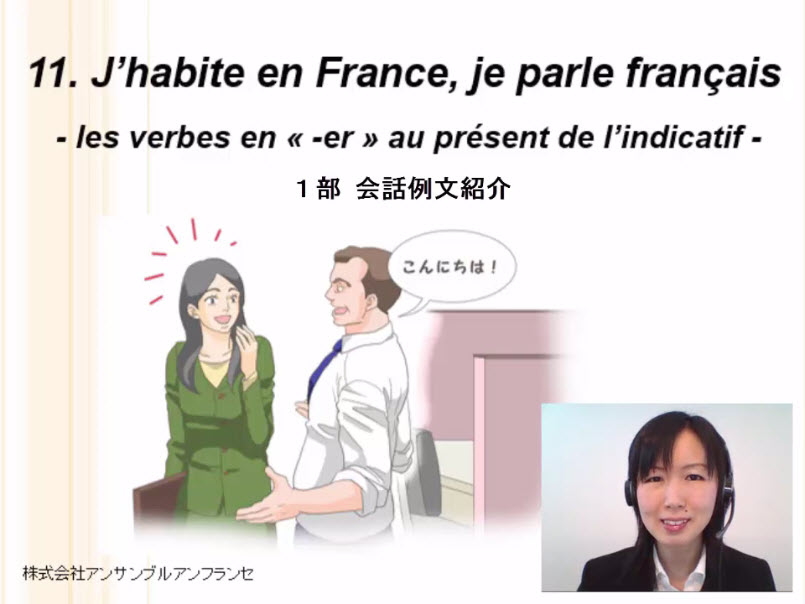 会話、-er動詞活用語尾、habiter, parler の活用、住んでいる場所の言い方、言語、国の形容詞、街、単語、例文、役立つ表現、発音