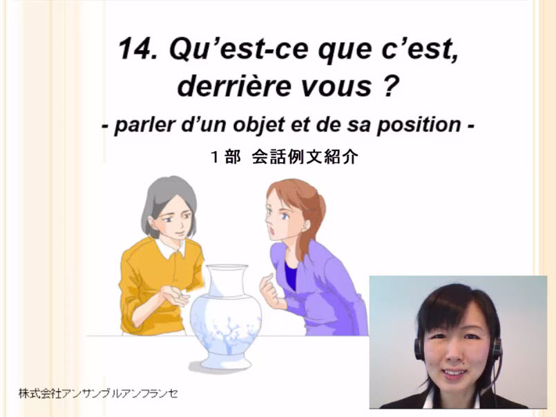 Qu’est-ce que c’est, derrière vous ? 「それはなんですか」と尋ね、答えるための言い方を学びましょう。また、物の位置や場所を示すときに必要な語句を覚えましょう。