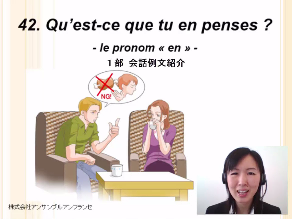 会話、中性代名詞 en (成り立ちと用法)、文中における en の位置、単語、例文、役立つ表現、発音