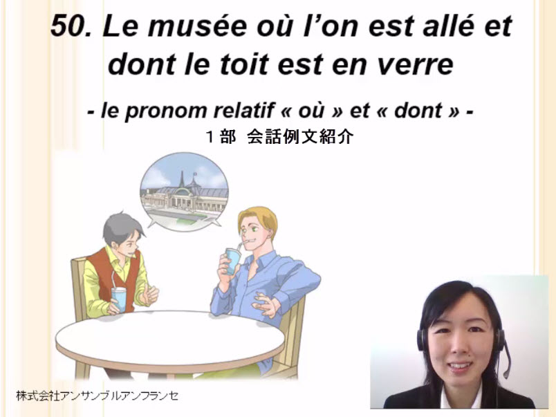 会話、関係代名詞 où と dont の役割、文章構築法と注意点、虚辞の le、単語、例文、役立つ表現、発音