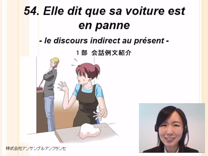 Elle dit que sa voiture est en panne. 間接話法の概念を理解し、現在時制における直接話法から間接話法へのメカニズムを掴んで正しく間接話法の文に書き換えましょう。