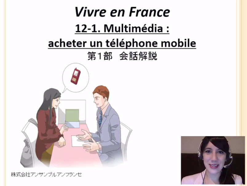 Multimédia : acheter un téléphone mobile. 携帯電話契約加入時、様々な契約形態の違いを聞き出し、より自分の希望に沿った契約を交わすまでの会話表現を習得します。
