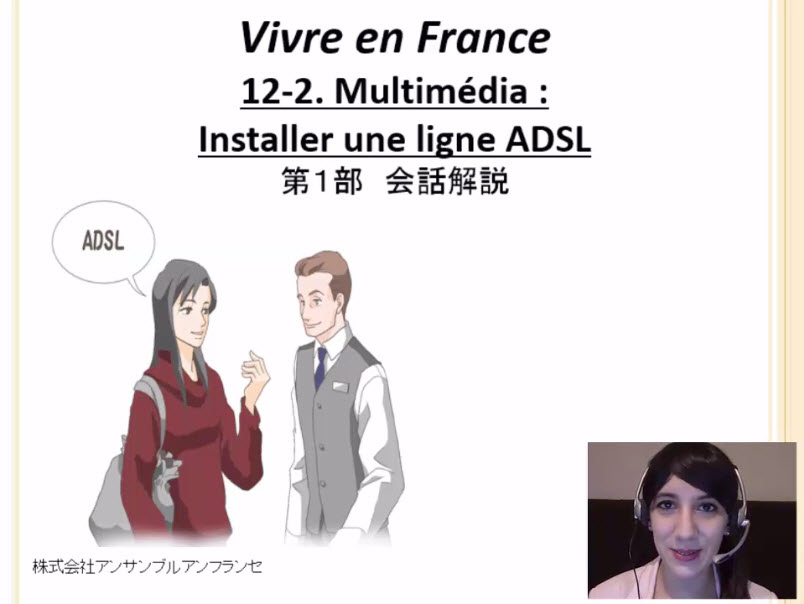 Multimédia : Installer une ligne ADSL. インターネット加入契約時、様々な契約形態の違いを聞き出し、より自分の希望に沿った契約を交わすまでの会話表現を習得します。