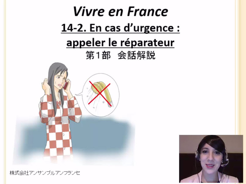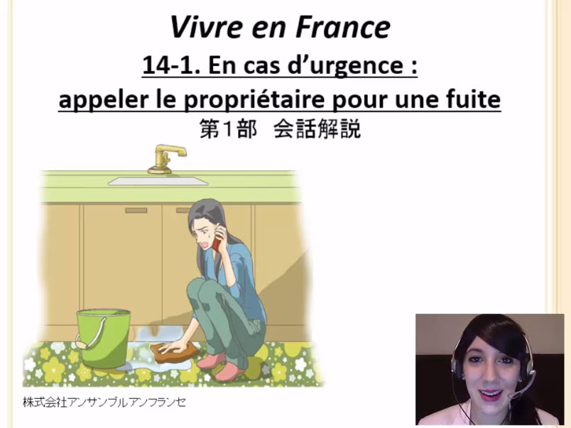 En cas d’urgence : appeler le réparateur. 水周りトラブルが発生。修理業者に電話し、困窮している状況を詳細に伝え、希望を通すまでの会話や表現を習得します。