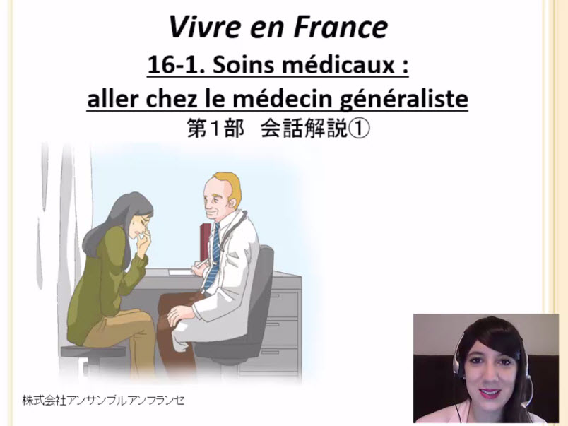 Soins médicaux : aller chez le médecin généraliste. 緊急に内科医を受診するため秘書に電話し、早急に予約を取り付け、詳細な症状を医師に伝え、治療法を聞くまでの会話表現を習得します。