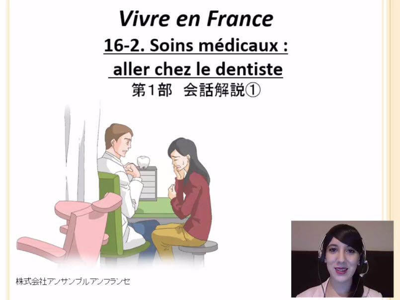 Soins médicaux : aller chez le dentiste. 歯科を受診するため秘書に電話し、早急に予約を取り付け、詳細な症状を歯科医師に伝えるまでの会話表現を習得します。